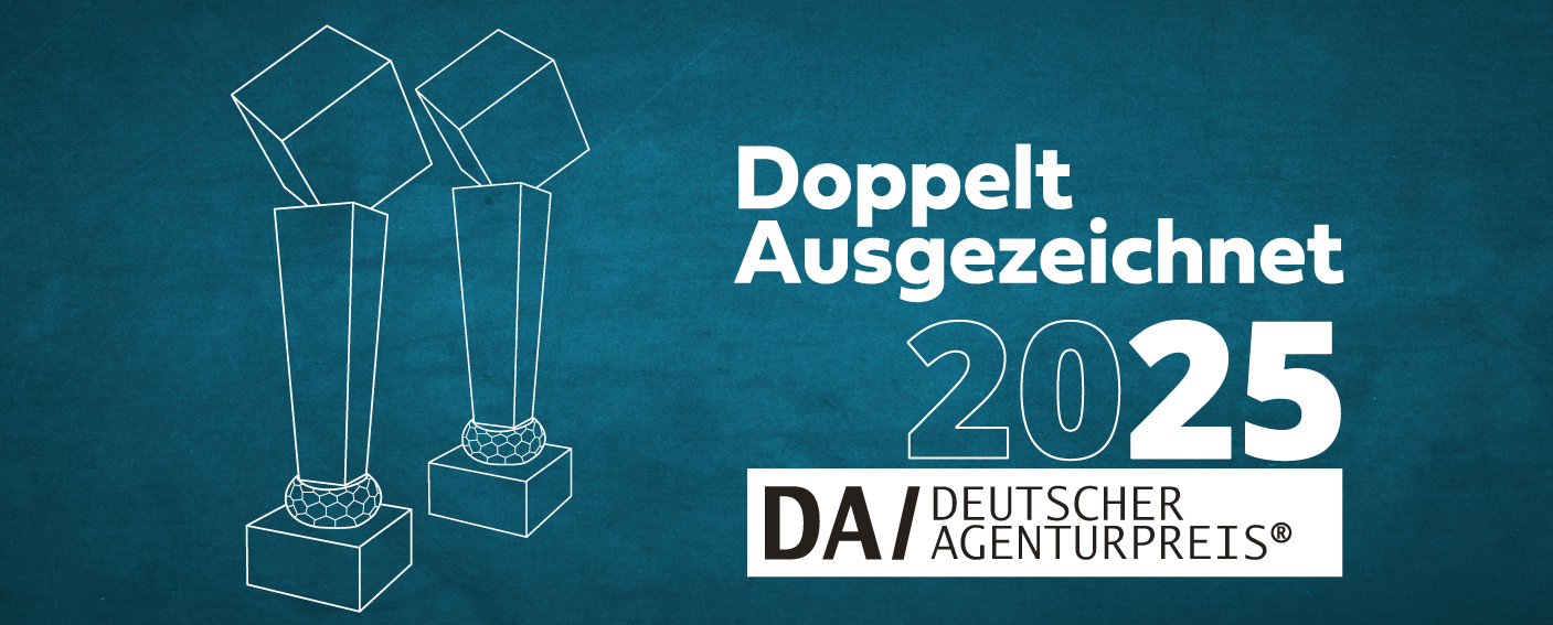 Der Deutsche Agenturpreis würdigt jedes Jahr herausragende Projekte und Kampagnen aus der Kommunikations- und Kreativbranche. Dass wir in diesem Jahr gleich zweimal überzeugen konnten, erfüllt uns mit großem Stolz und Dankbarkeit.